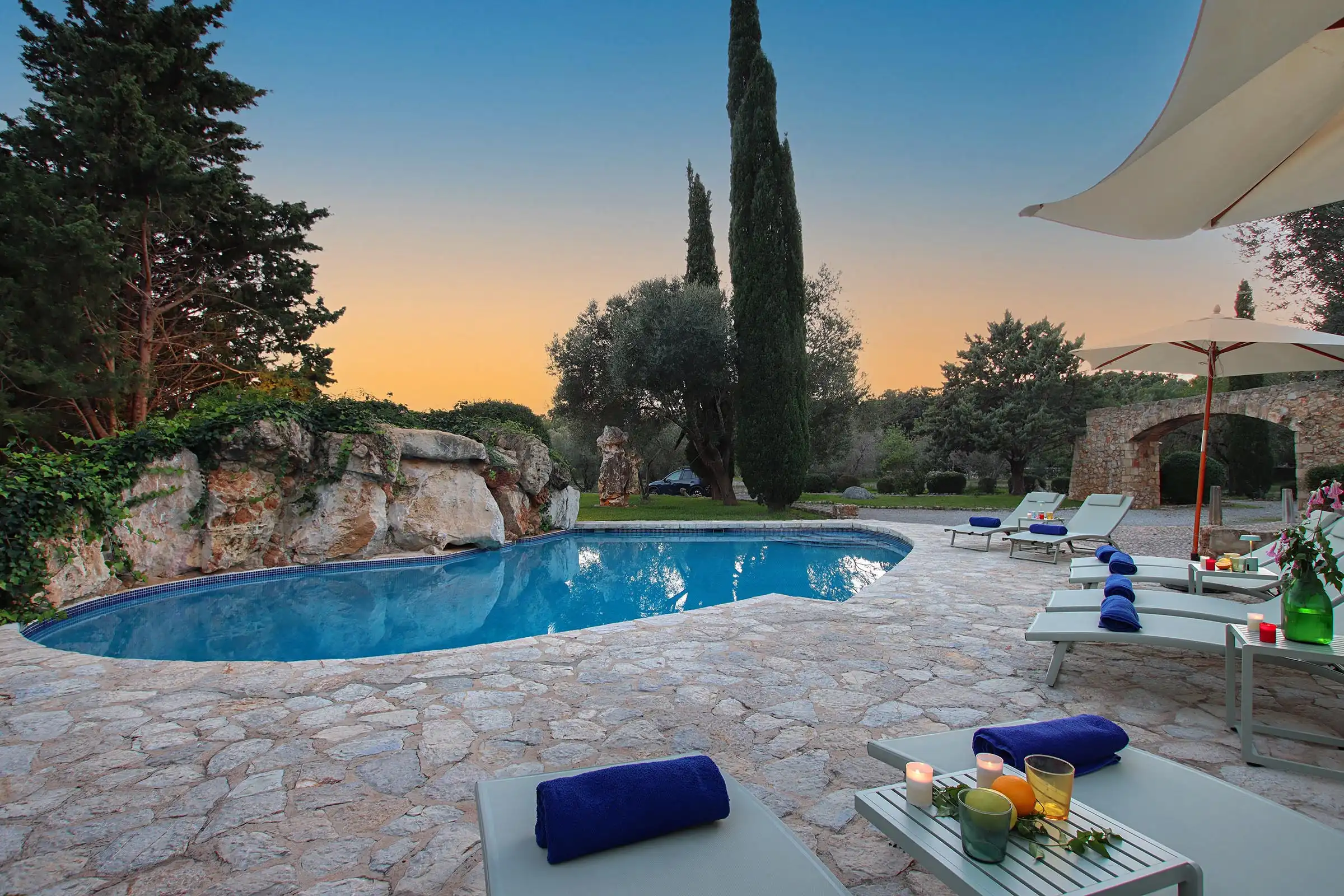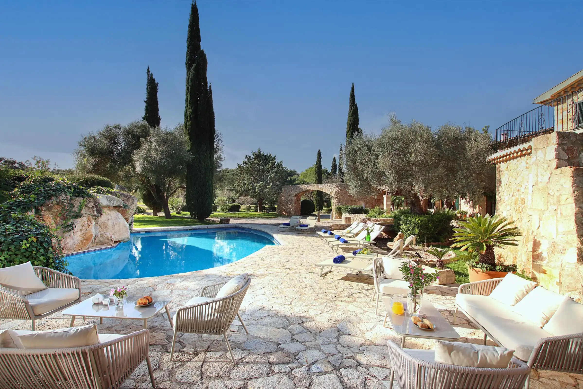 Finca Benni Nassa is a striking country villa in the heart of Mallorca’s Pollensa countryside, where classic Mediterranean architecture meets contemporary comfort. Approached via an iconic stone bridge and archway reminiscent of a miniature aqueduct, this unique property makes a memorable first impression and sets the tone for an exceptional holiday retreat.