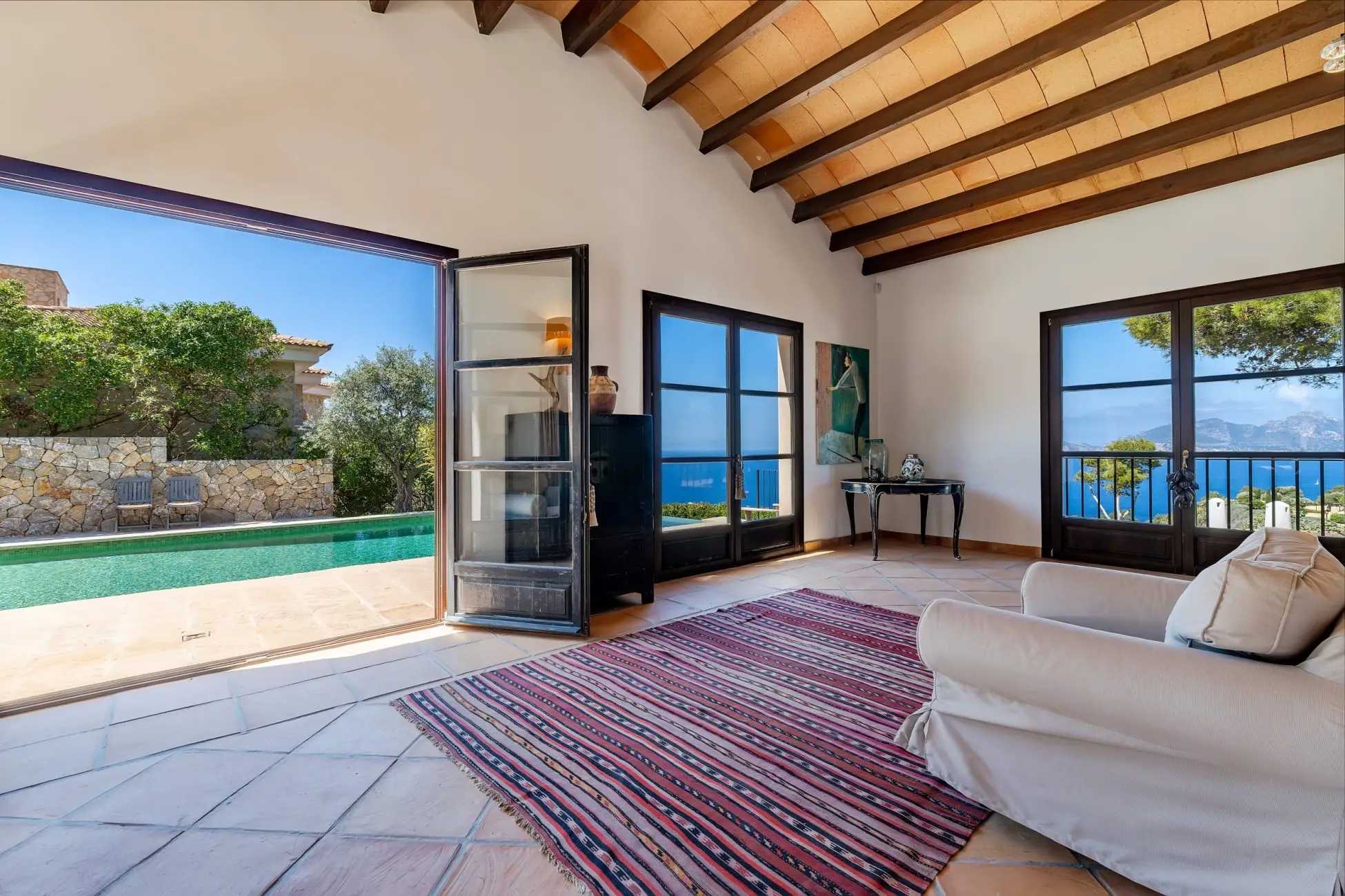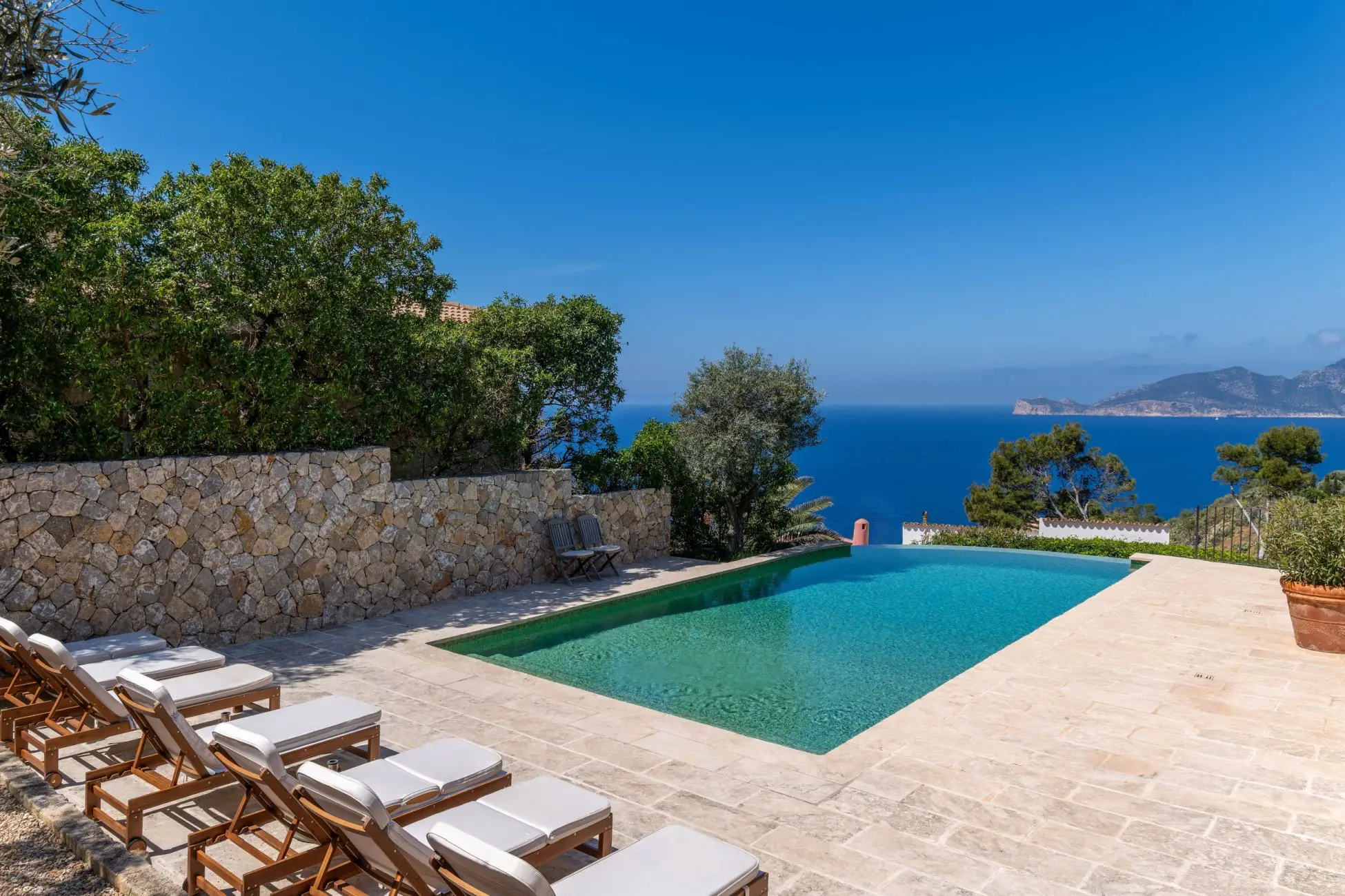 A beautiful Mediterranean style villa, full of character , with high vaulted , beamed ceilings , making for a welcoming ambience and offering ample space for groups of family or friends. Its floor-to-ceiling windows offer gorgeous sea views over Port Andratx. Set in its own grounds with a private infinity swimming pool, with uninterrupted sea views , the pool is approximately 11 x 5mtrs, there are plenty of sunny and shaded terrace spaces , a large gas BBQ to enjoy alfresco dining , as well as a ball path to enjoy a game of boules.