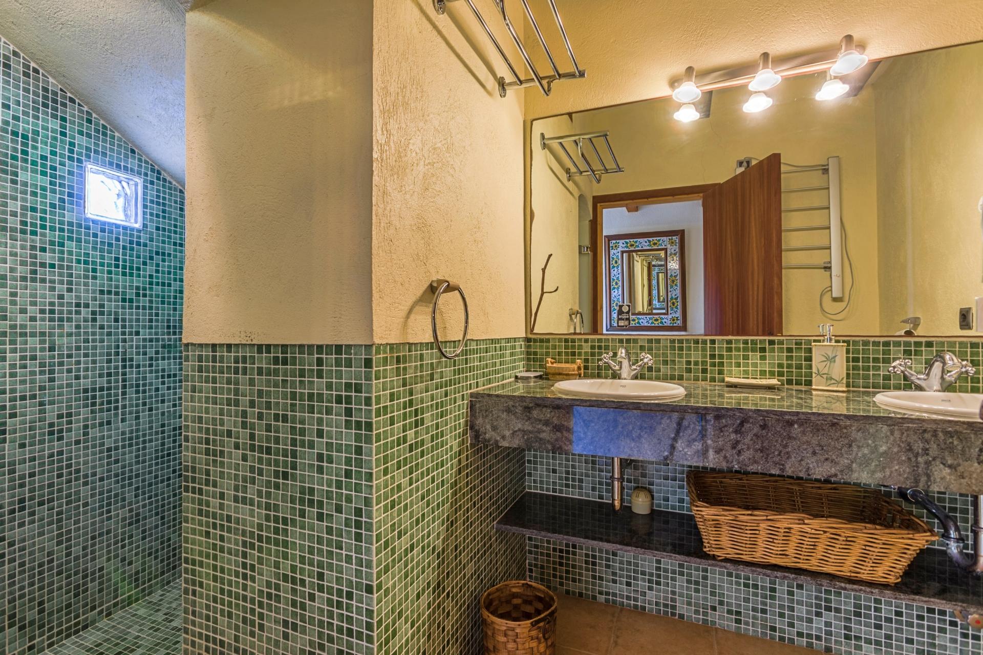 The inviting swimming pool is set within stone-paved terraces and enjoys stunning panoramic views over Pollensa’s old town. Equipped with sun loungers, shaded areas, a barbecue, and a dining table, this is the perfect spot for al fresco meals while soaking up the scenery and Mediterranean sunshine.