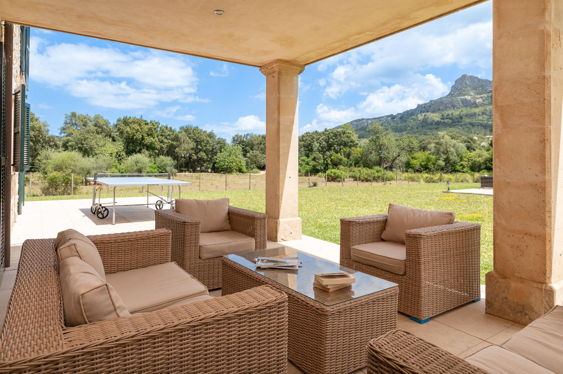 Villa Alba Marc is a charming 4-bedroom farmhouse-style villa in the Marc Valley, sleeping up to 8 guests. With a private pool, terraces, grassy gardens, and stunning mountain views, it blends traditional Mallorcan design with modern comforts, just a short drive from Pollensa, Cala San Vicente, and Puerto Pollensa.