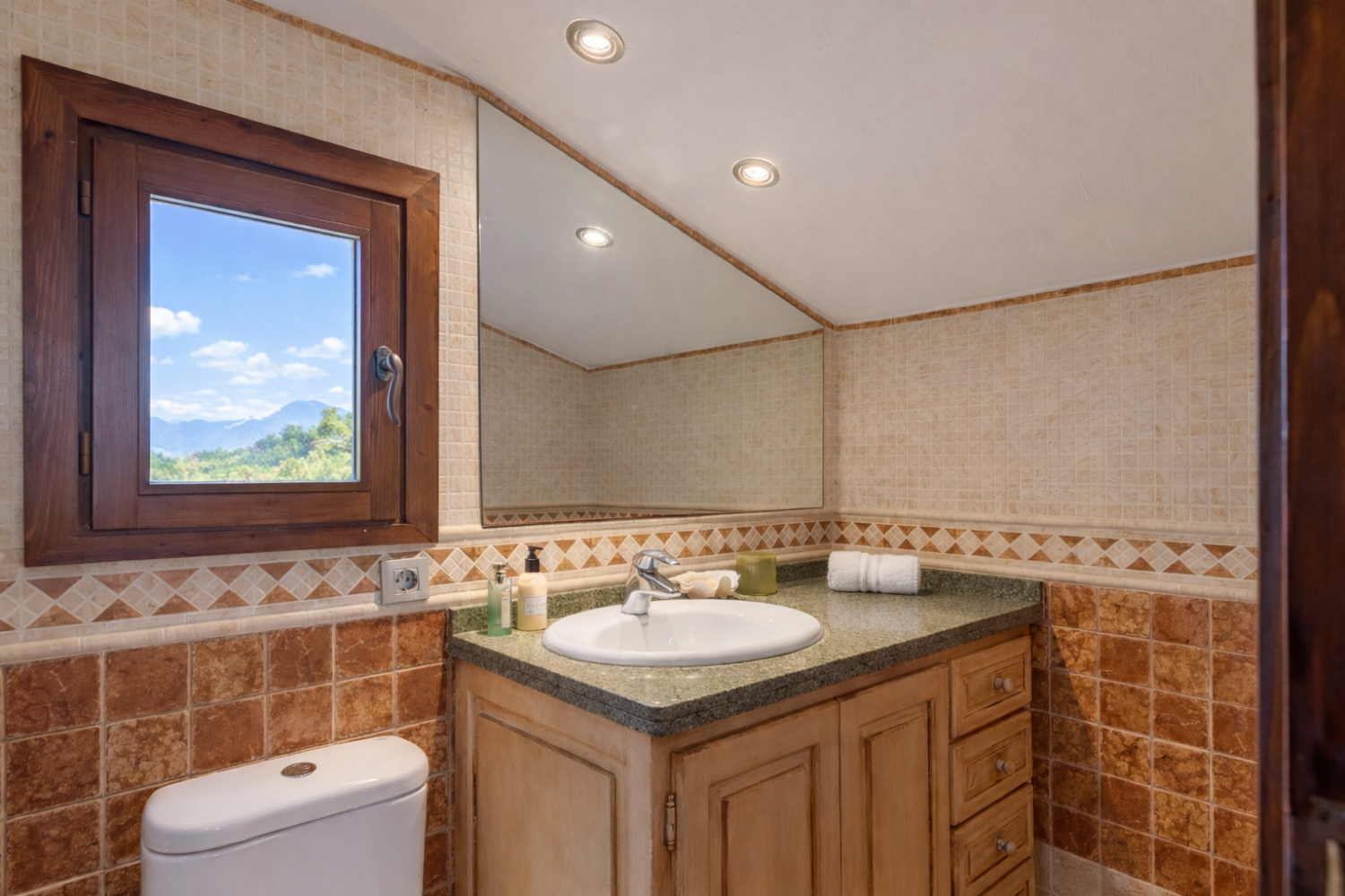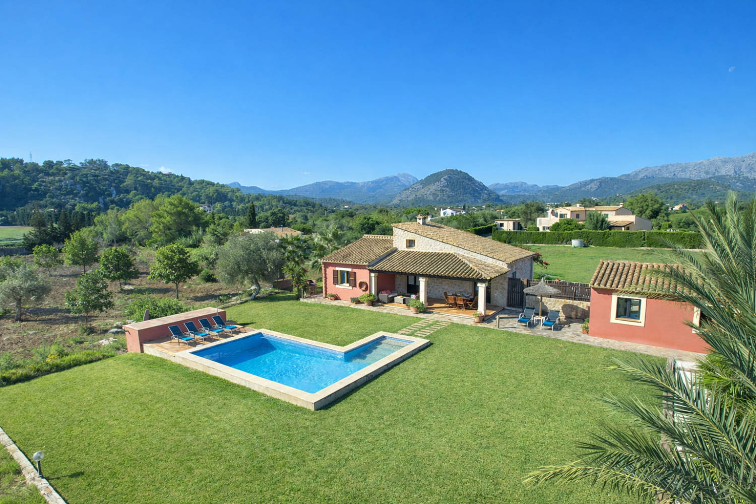 - Private swimming pool with sun loungers and mountain views