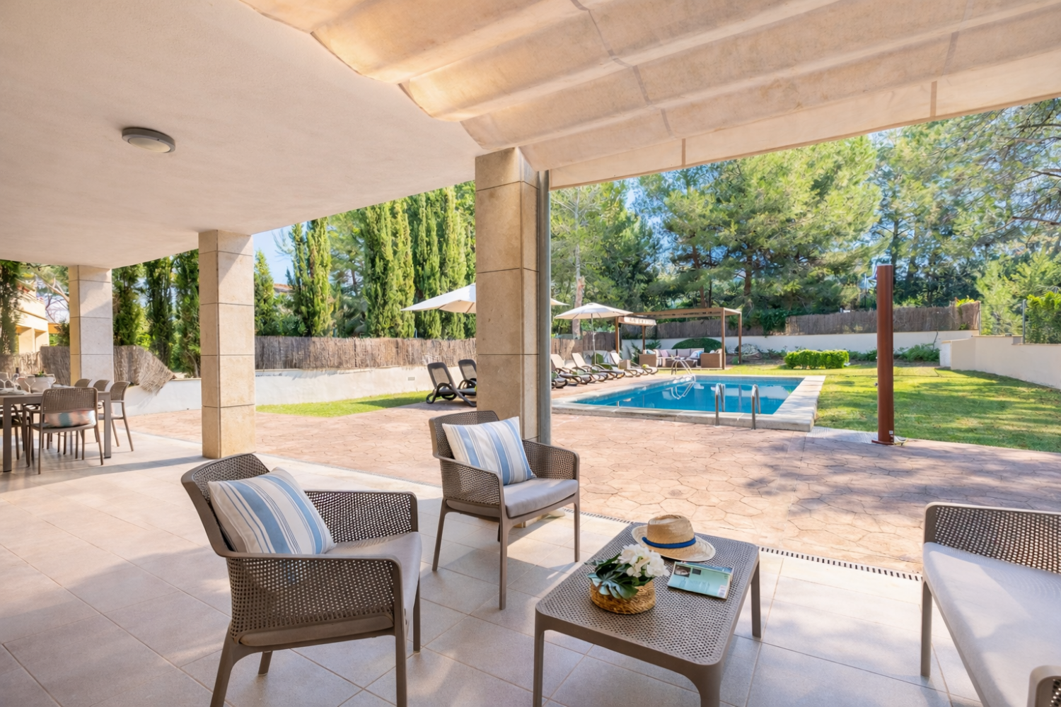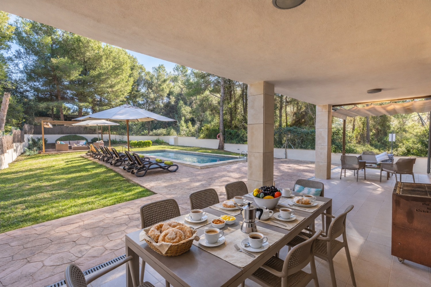 Villa Can Manresa is located in a peaceful residential area surrounded by other private homes, offering a quiet and relaxing atmosphere.