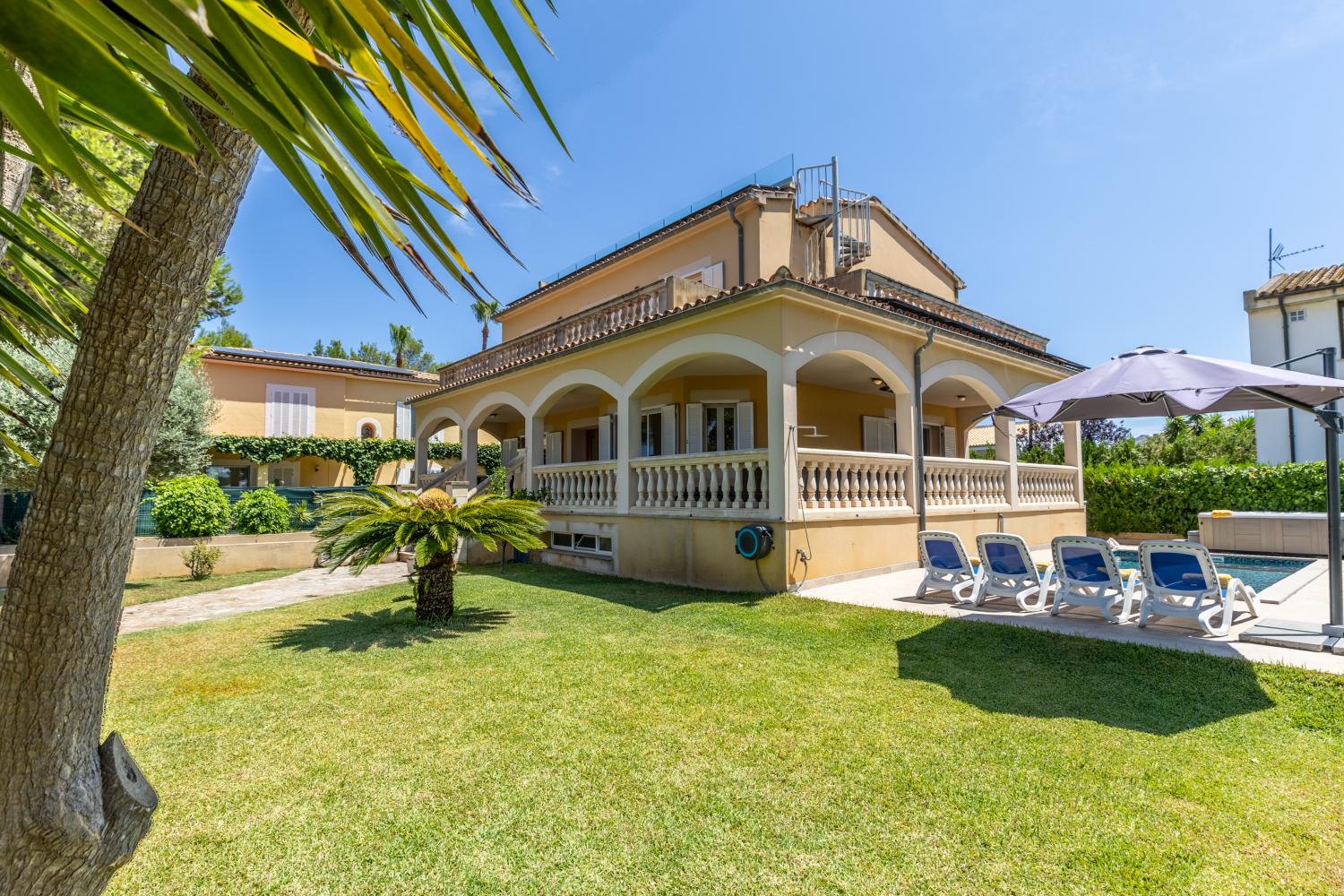 Designed for relaxed Mediterranean living, the villa boasts spacious covered terraces ideal for al fresco dining or unwinding with a book, as well as a private swimming pool and jacuzzi, all framed by a lovely garden and open views over the Albufera Natural Park.