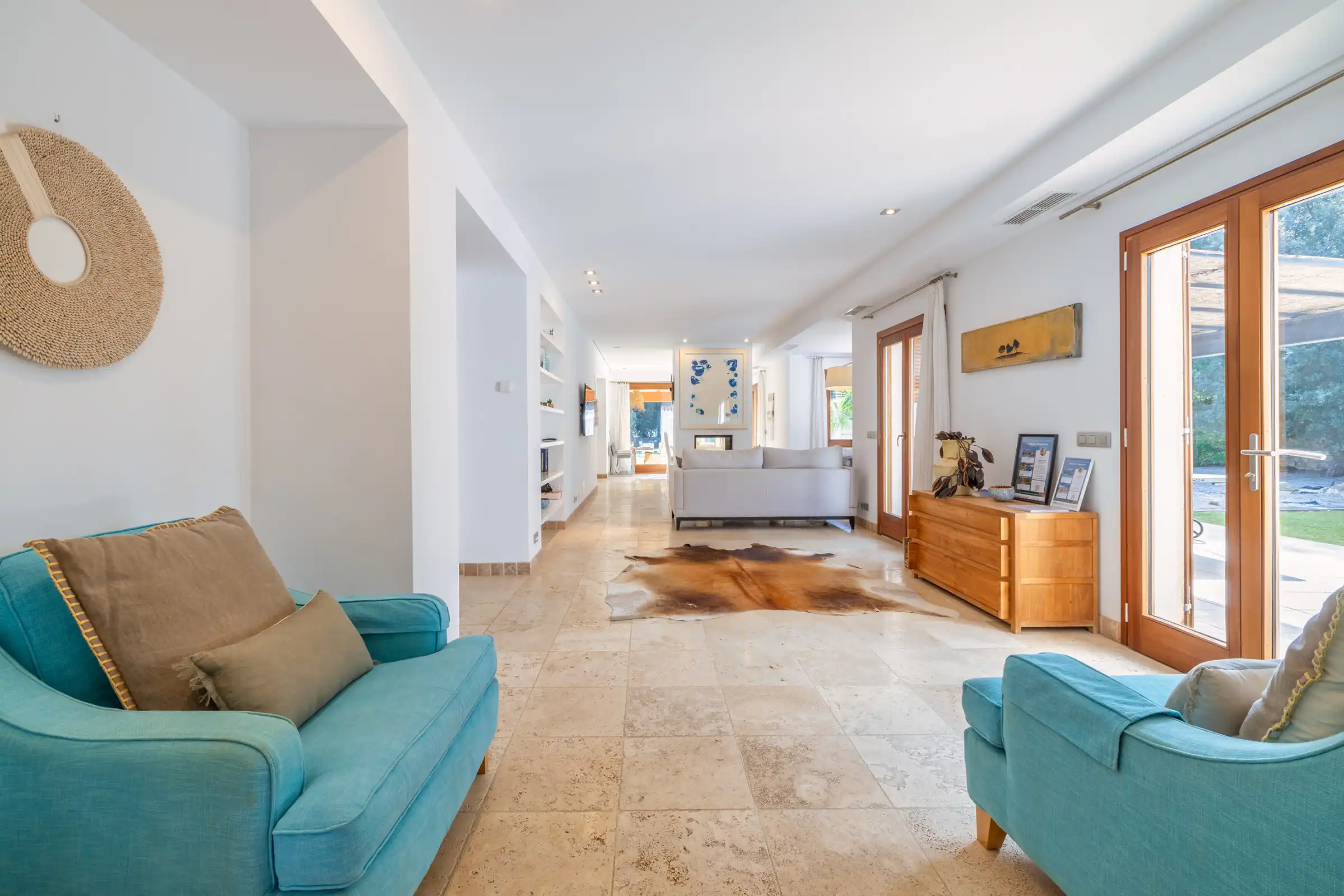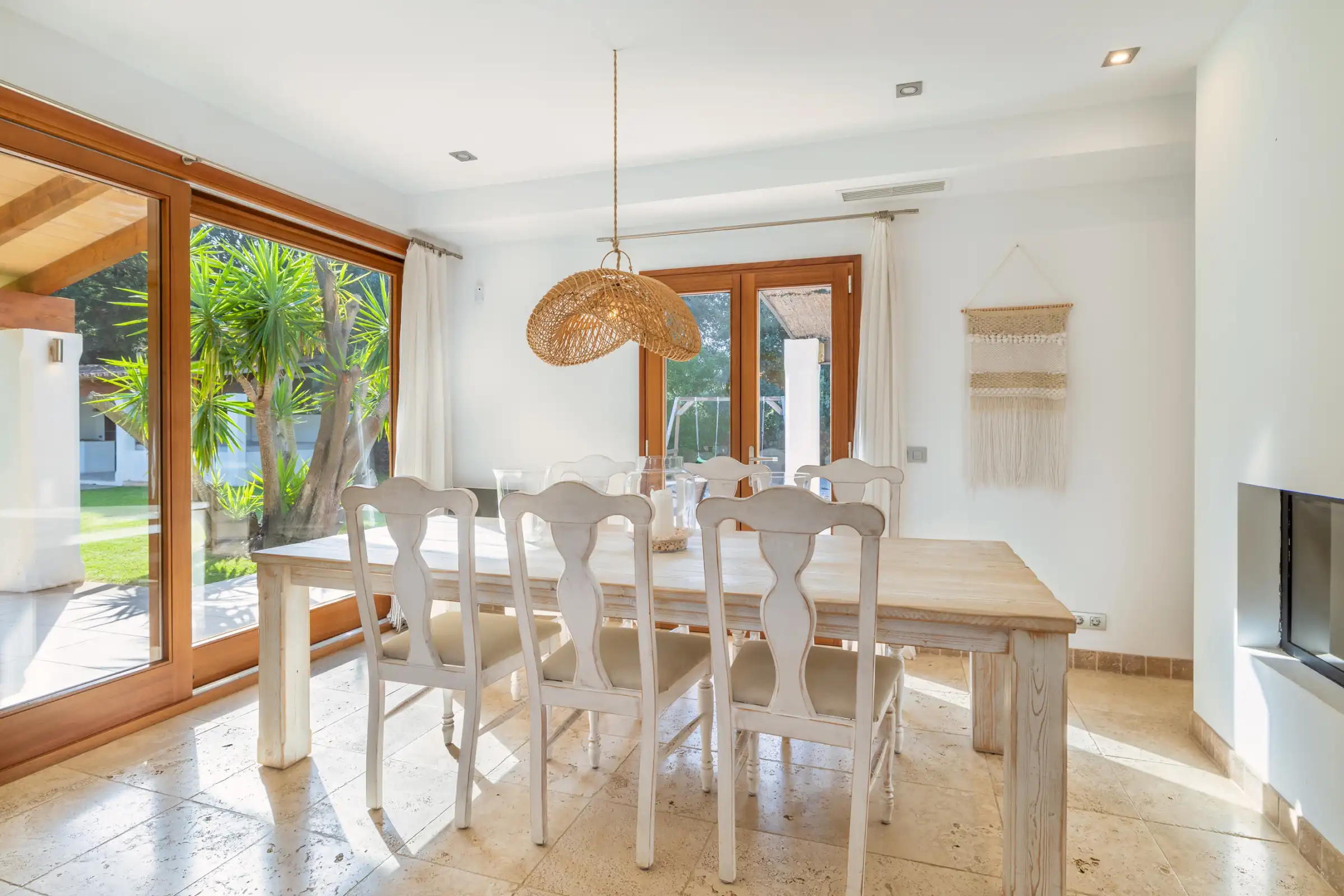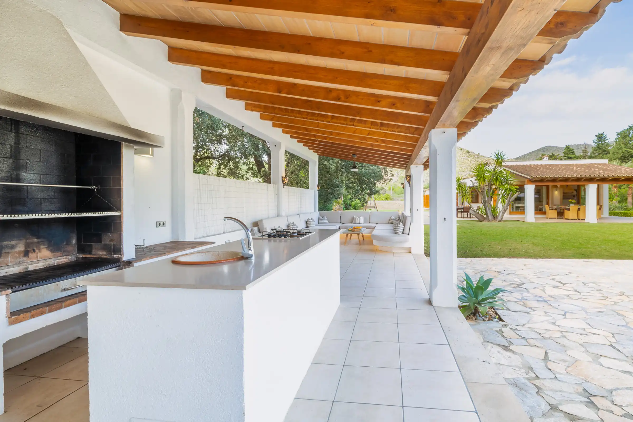 The villa is particularly well suited to families and larger groups thanks to its spacious layout and excellent outdoor facilities. The large heated private swimming pool sits at the heart of the grounds, with plenty of room for sunbathing, relaxing and dining outside. There are covered terraces, a separate entertaining area, an outdoor kitchen and an Argentinian barbecue, creating a superb setting for long lazy lunches and sociable evenings. The enclosed gardens also feature mature trees, a children’s play area with swings and a ping-pong table.