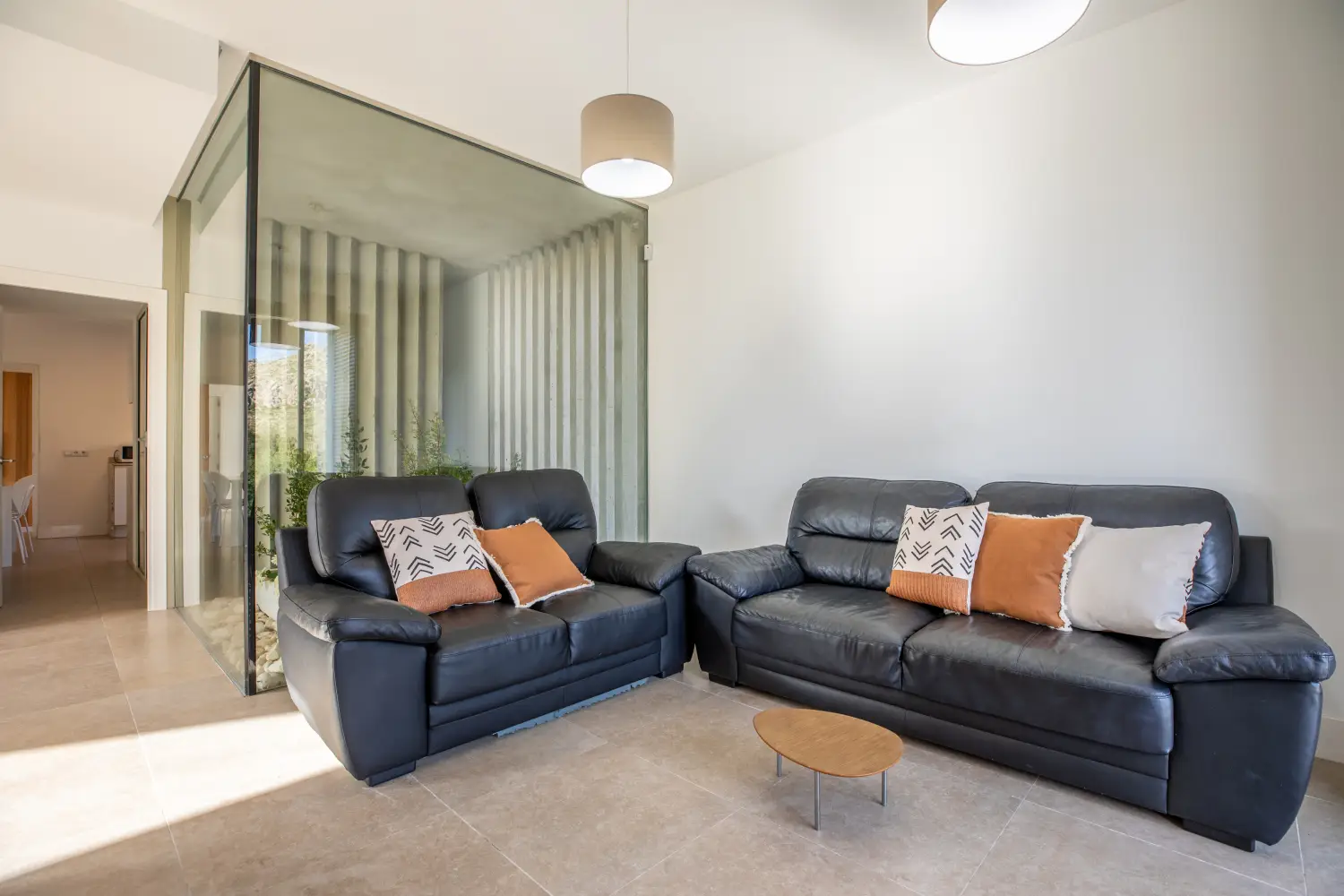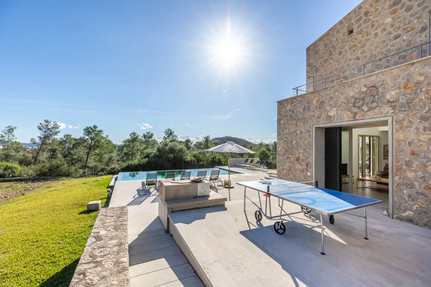 The outdoor spaces are where Villa Talaia Vella truly shines. Long, lazy lunches can be enjoyed on the shaded terrace overlooking the infinity pool. The surrounding gardens are filled with Mediterranean plants and peaceful corners, inviting you to relax with a book or evening drink. And for those with energy to spare, a table tennis table adds a playful touch.